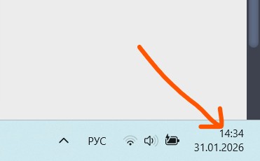- В правом нижнем углу экрана кликните правой кнопкой мыши по значку времени и даты.