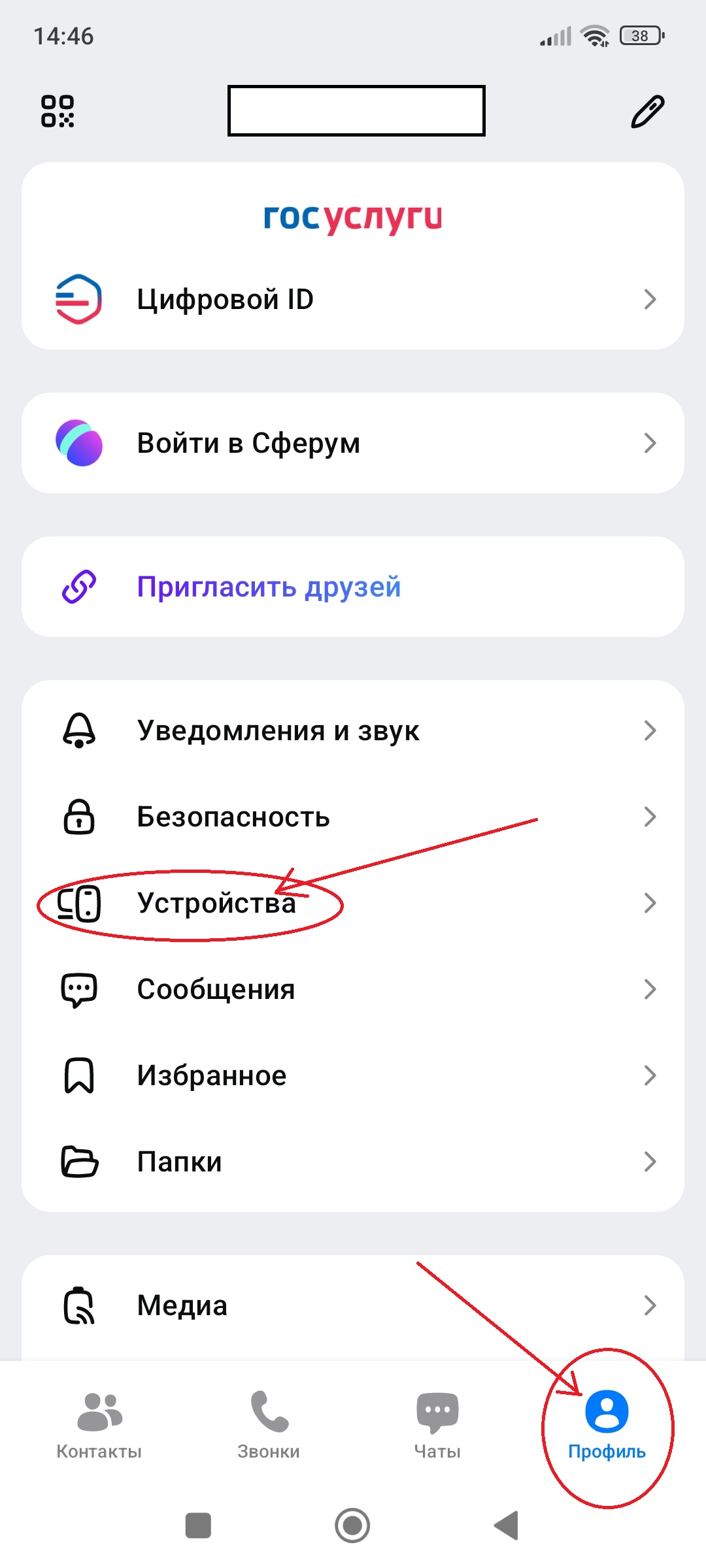 - Переходим в ниженем меню по кнопке Профиль -> Устройства -> Войти по QR-коду.